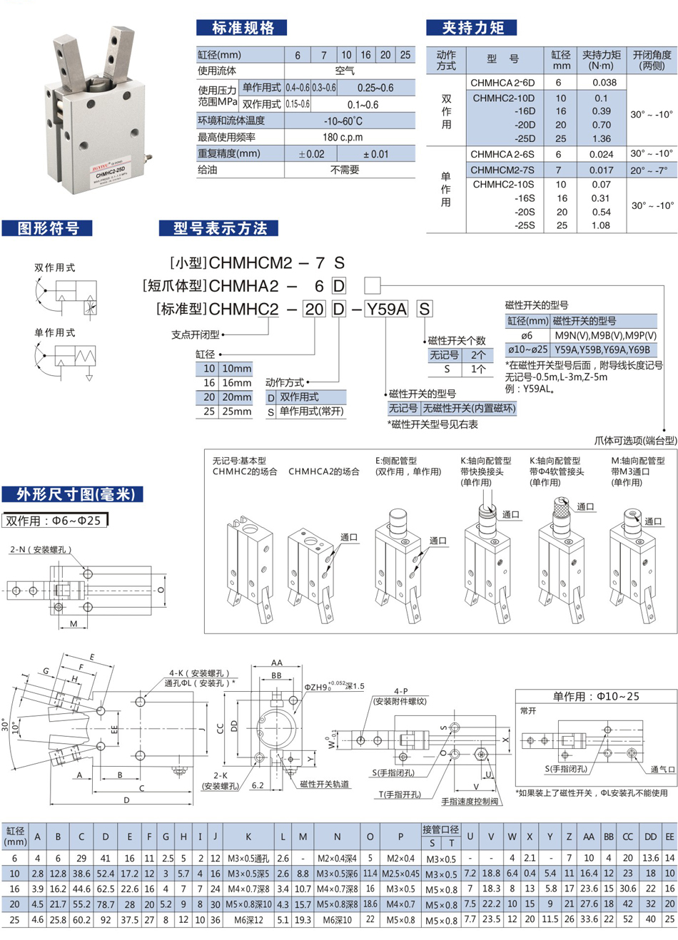 CHMHC□2系列(Φ6-Φ25) 氣爪(支點(diǎn)開閉型)/標(biāo)準(zhǔn)型
