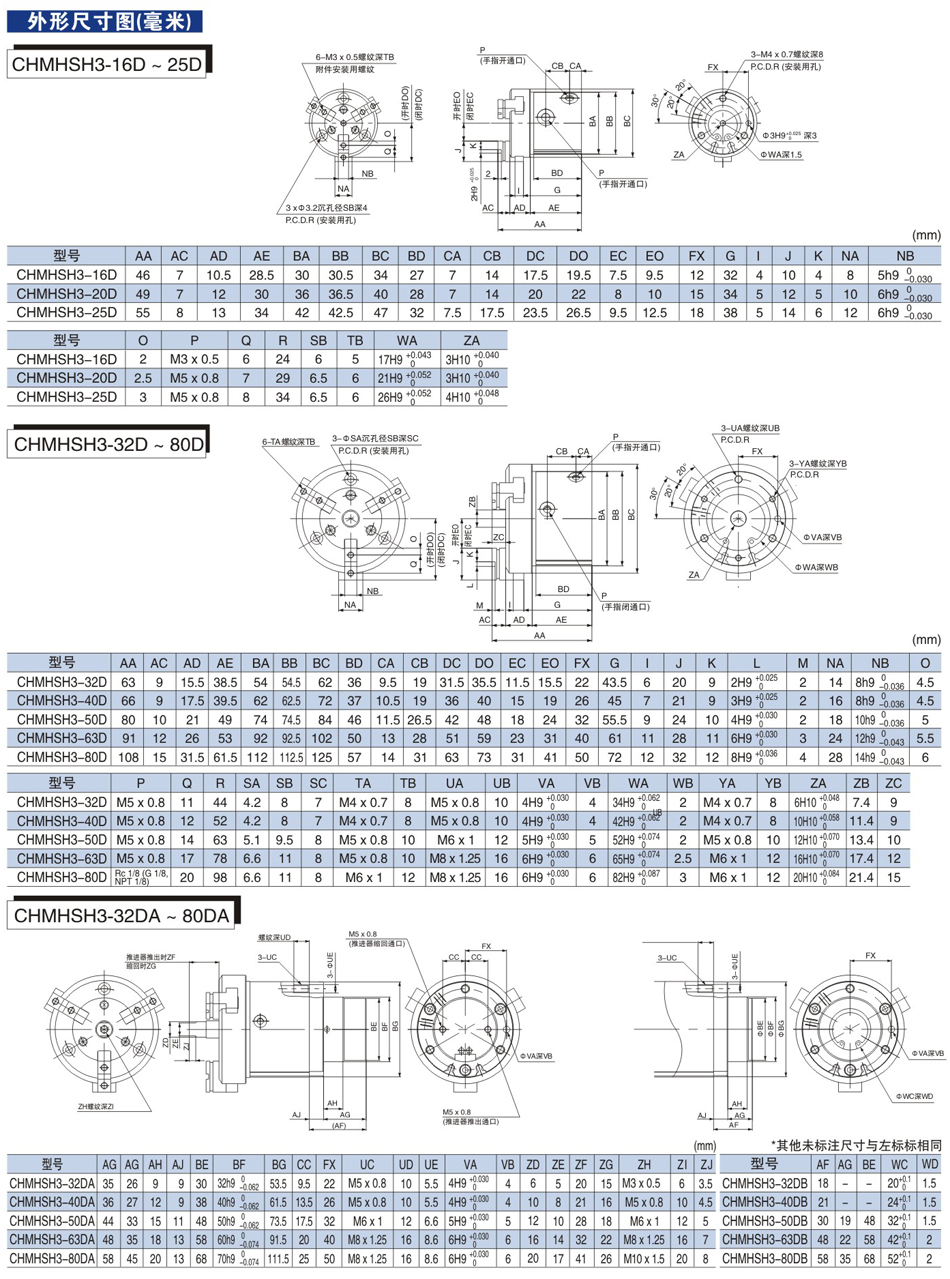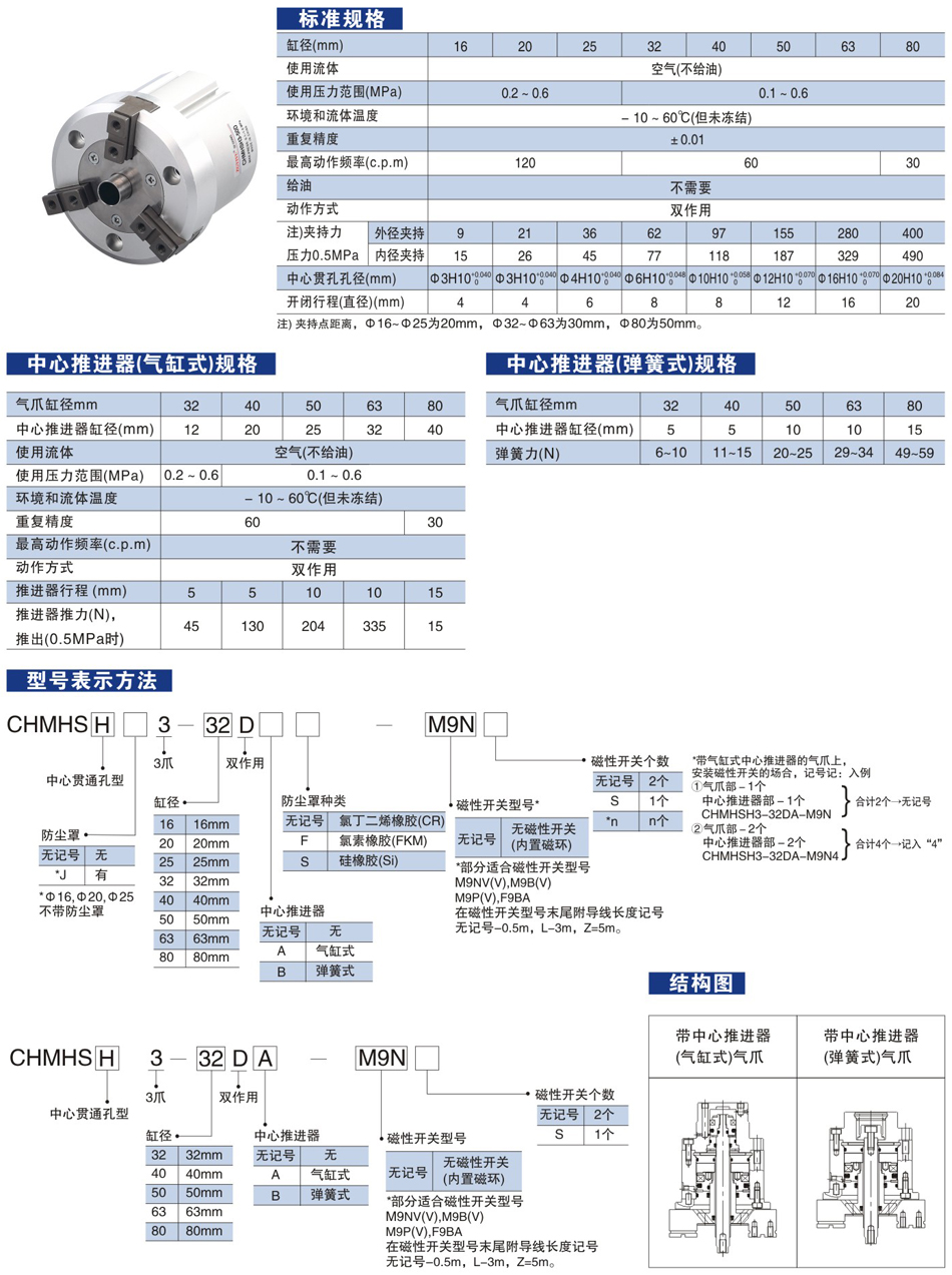 CHMHSH3系列(Φ16-Φ80) 氣爪(平行開閉型)/中心貫通孔