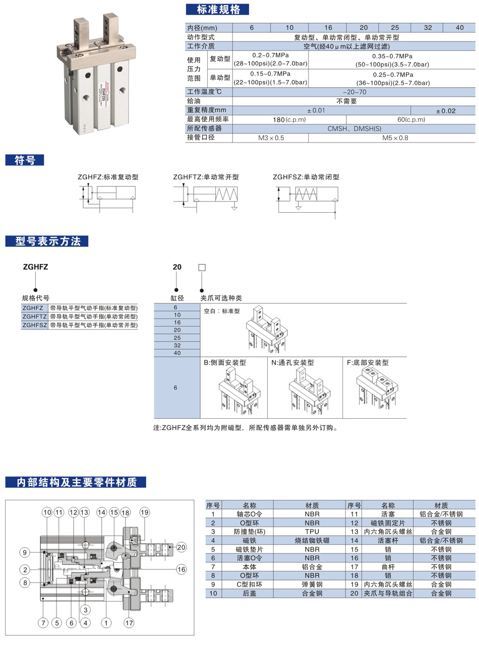 ZGHFZ系列(Φ6-Φ40) 氣動(dòng)手指(帶導(dǎo)軌平行型-滾珠型)