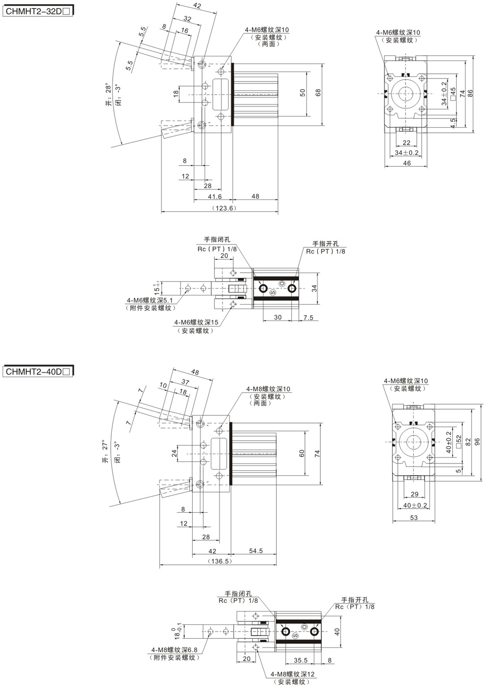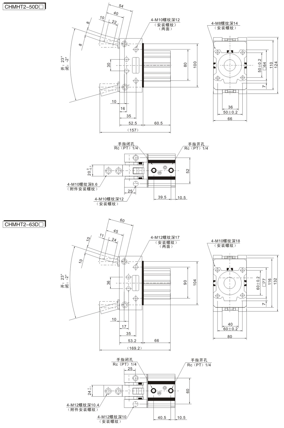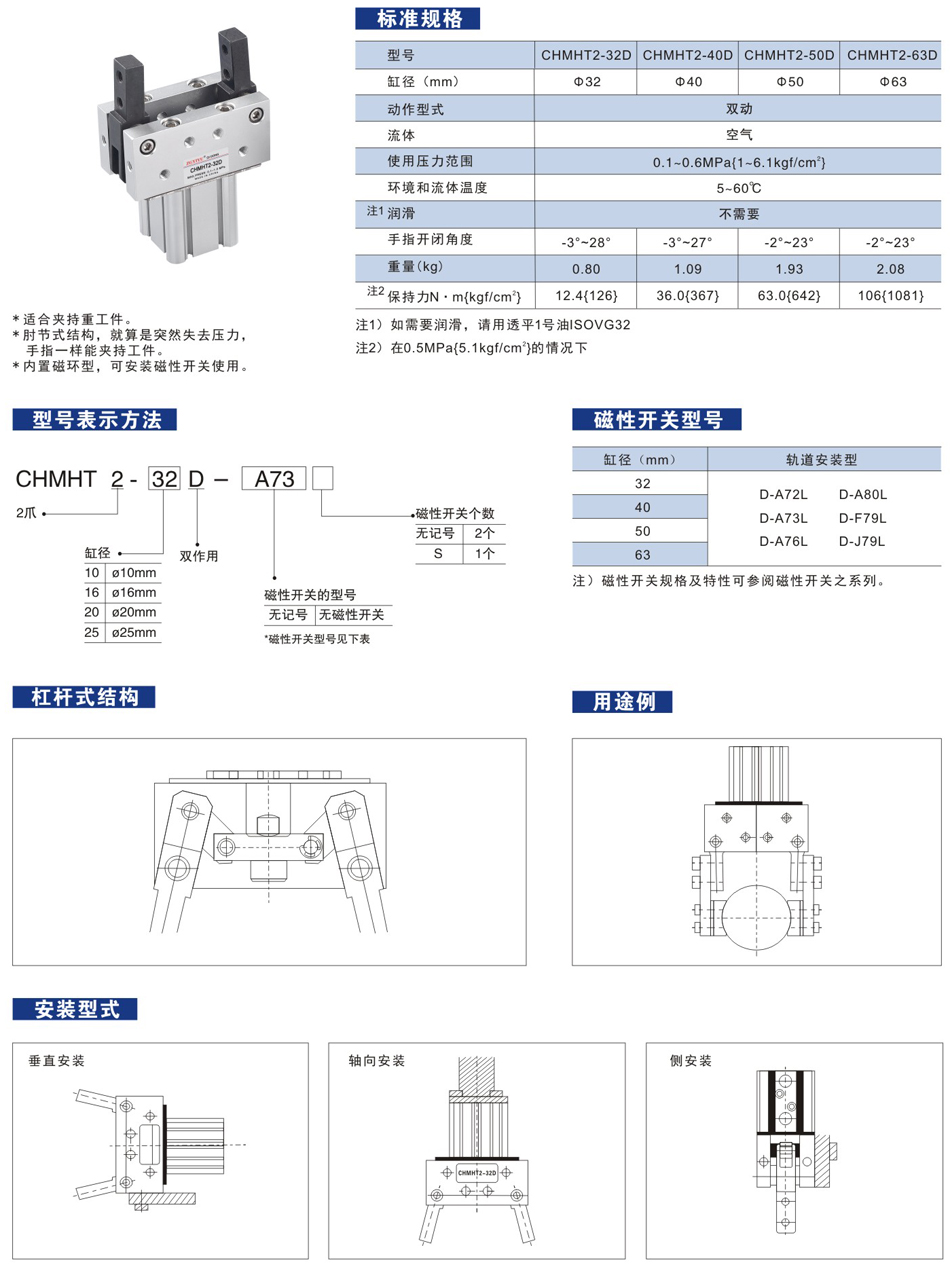 CHMHT2系列(Φ32-Φ63) 氣爪(支點開閉型)/肘節(jié)型