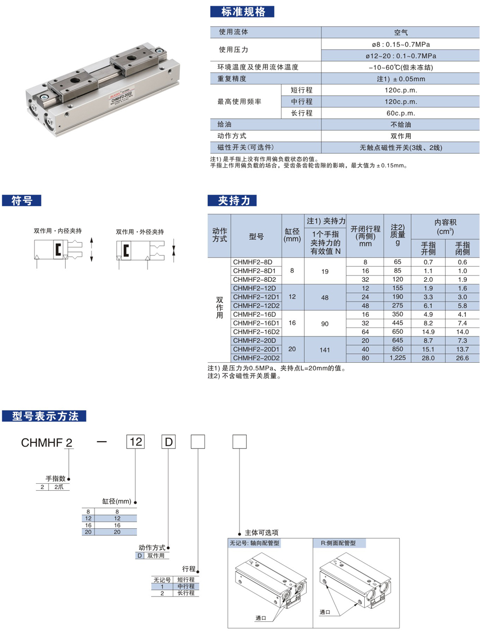 CHMHF2系列(Φ8-Φ20) 薄型氣爪