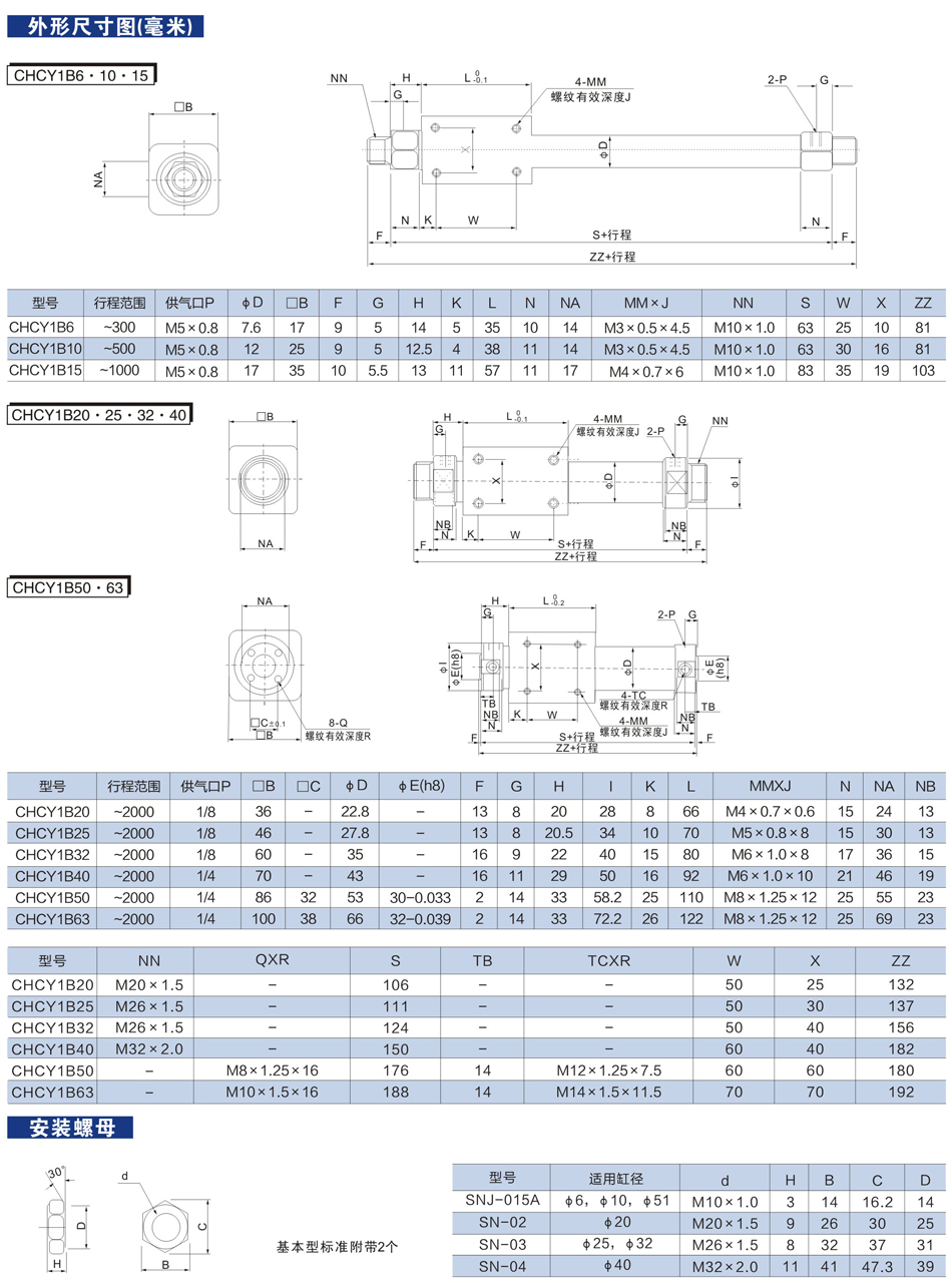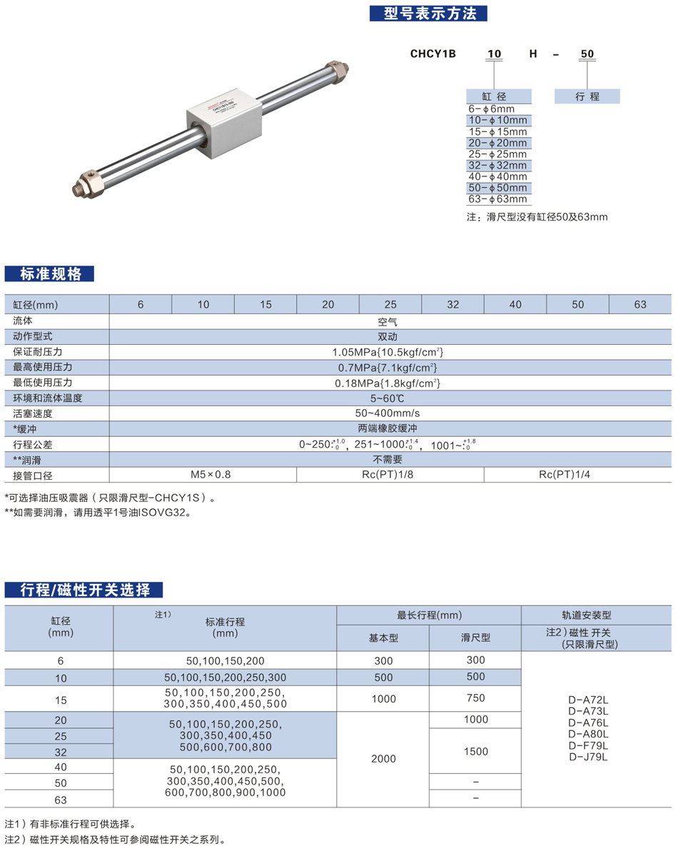 CHCY1B/CHCY3B系列(Φ6-Φ63) 磁偶式無(wú)桿氣缸