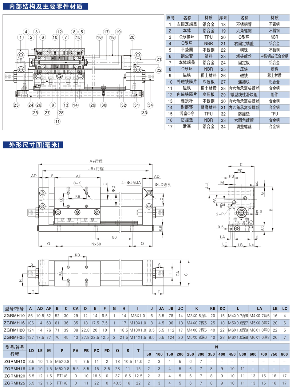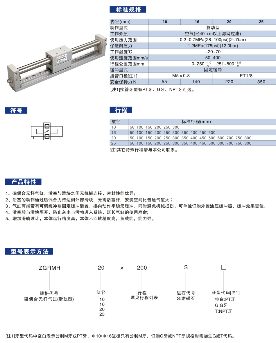 ZGRMH系列(Φ10-Φ25) 磁偶式無桿氣缸