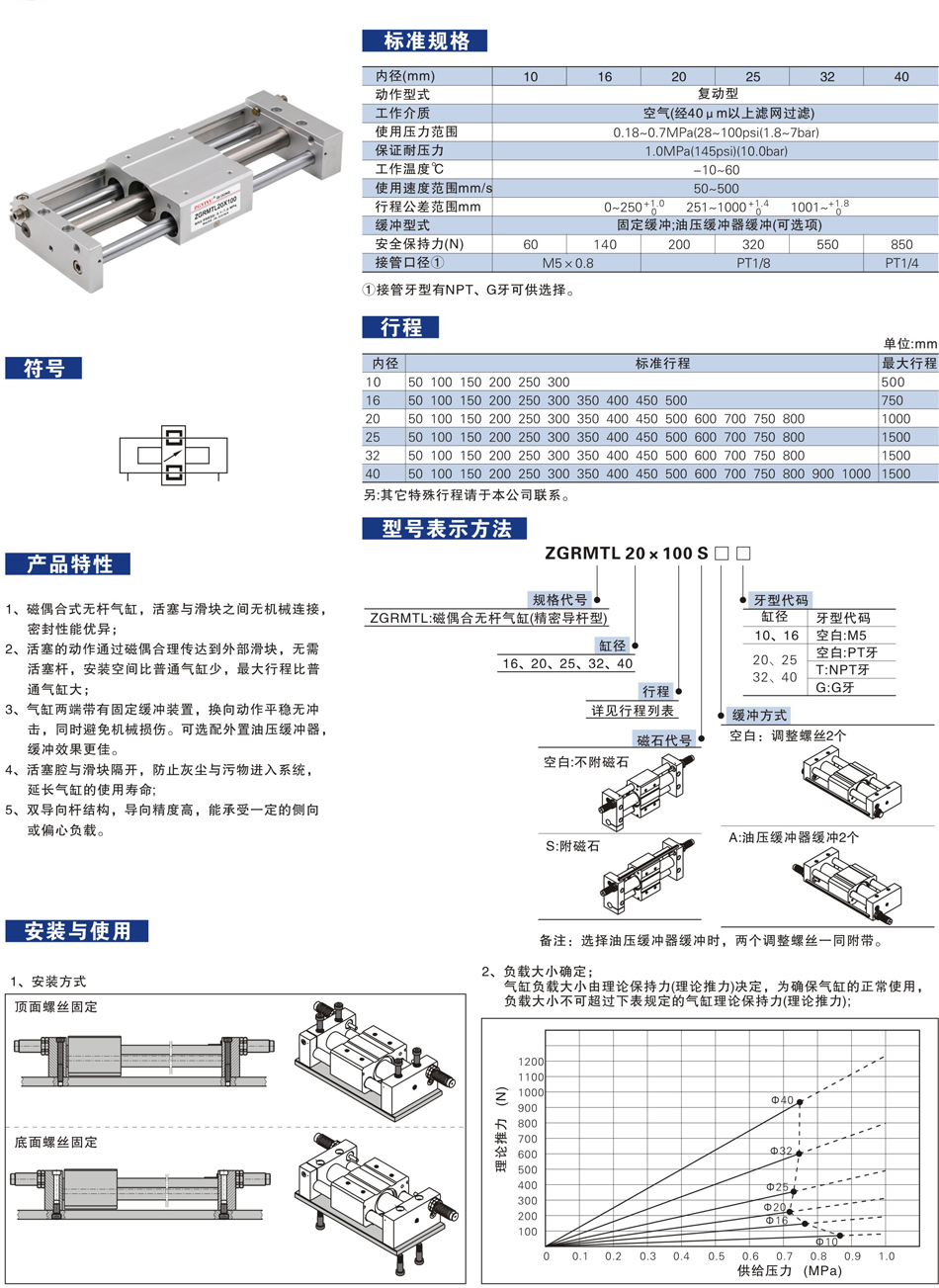 ZGRMTL系列(Φ10-Φ40) 磁偶式無(wú)桿氣缸