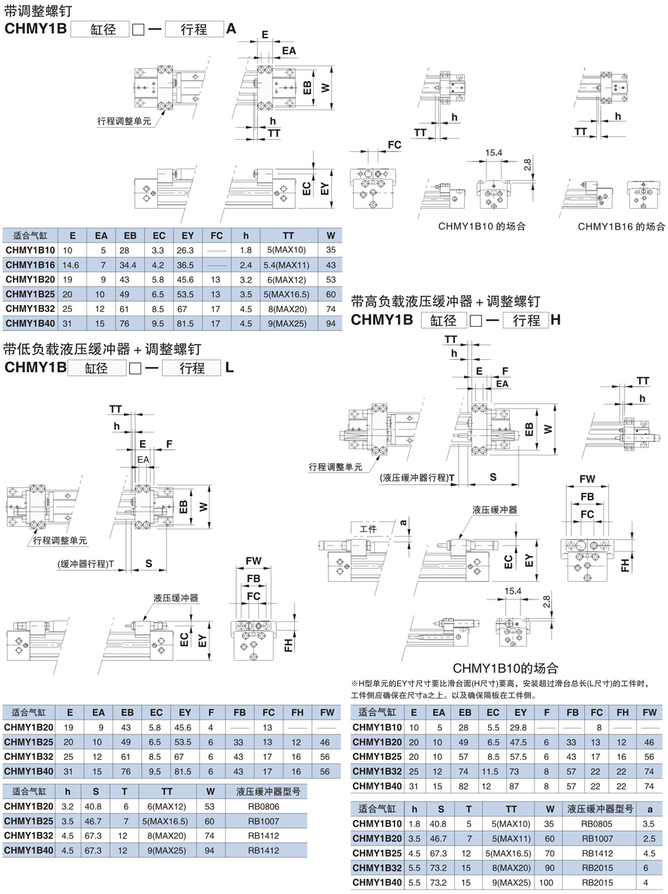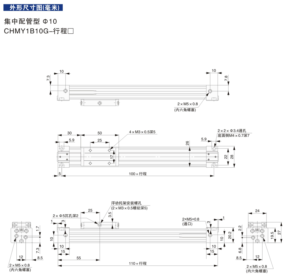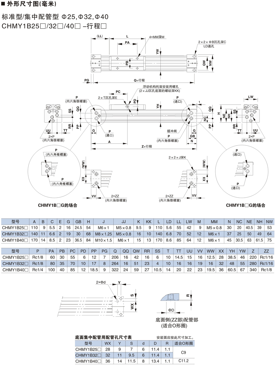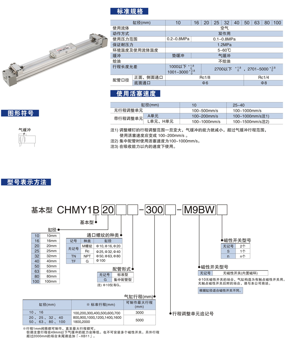 CHMY1B系列(Φ10-Φ100) 機(jī)械接合式無桿氣缸