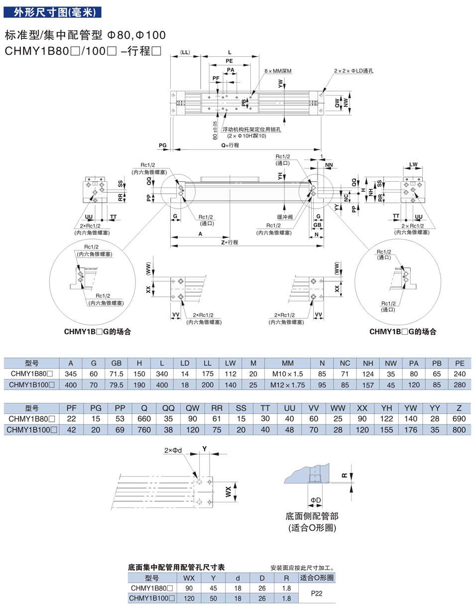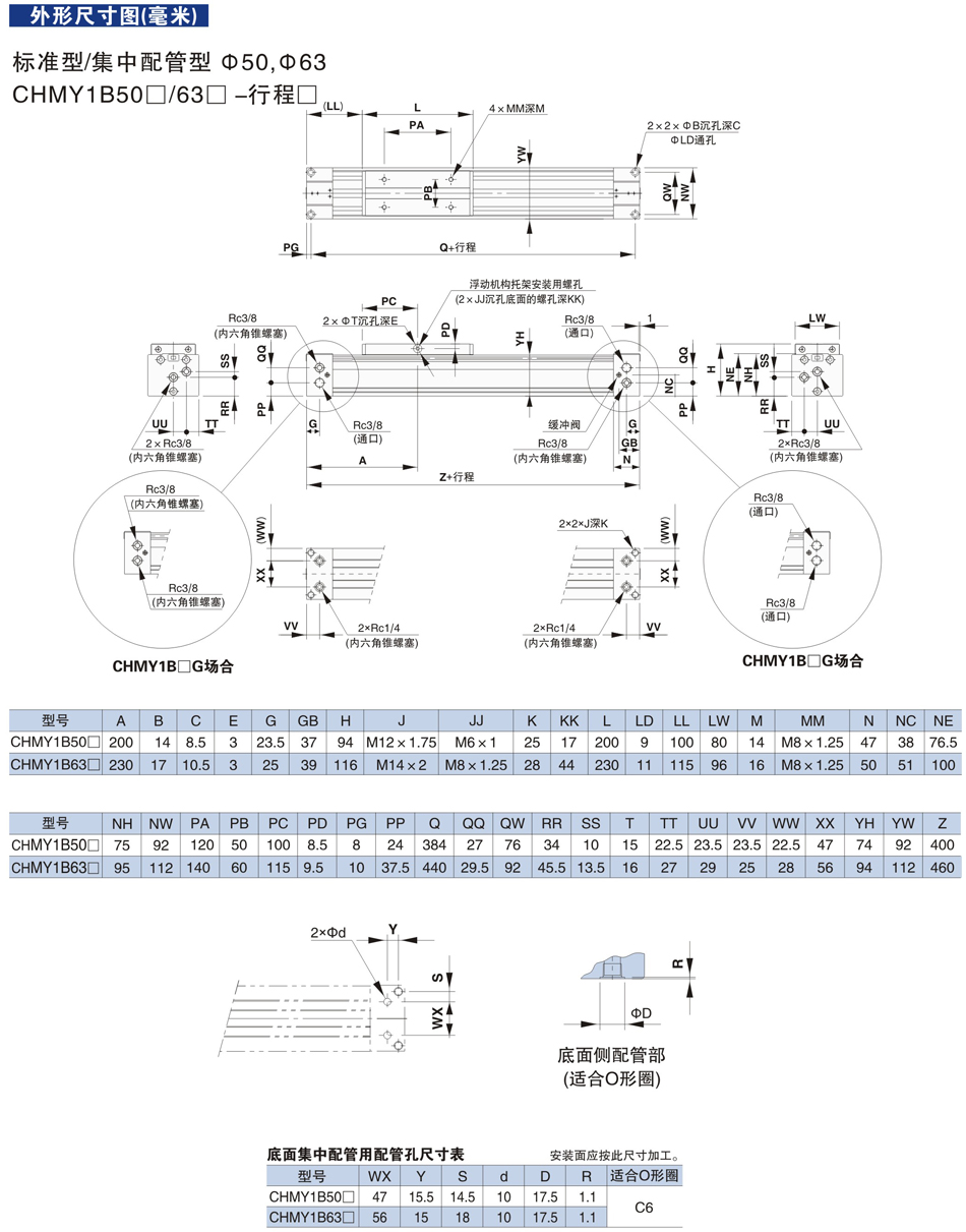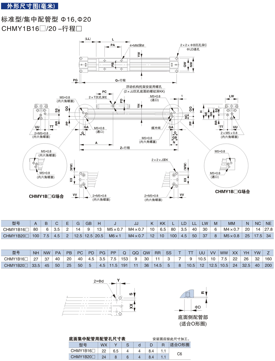 CHMY1B系列(Φ10-Φ100) 機(jī)械接合式無桿氣缸