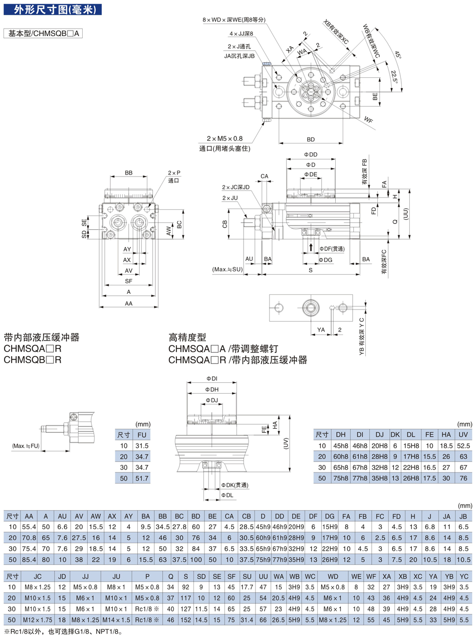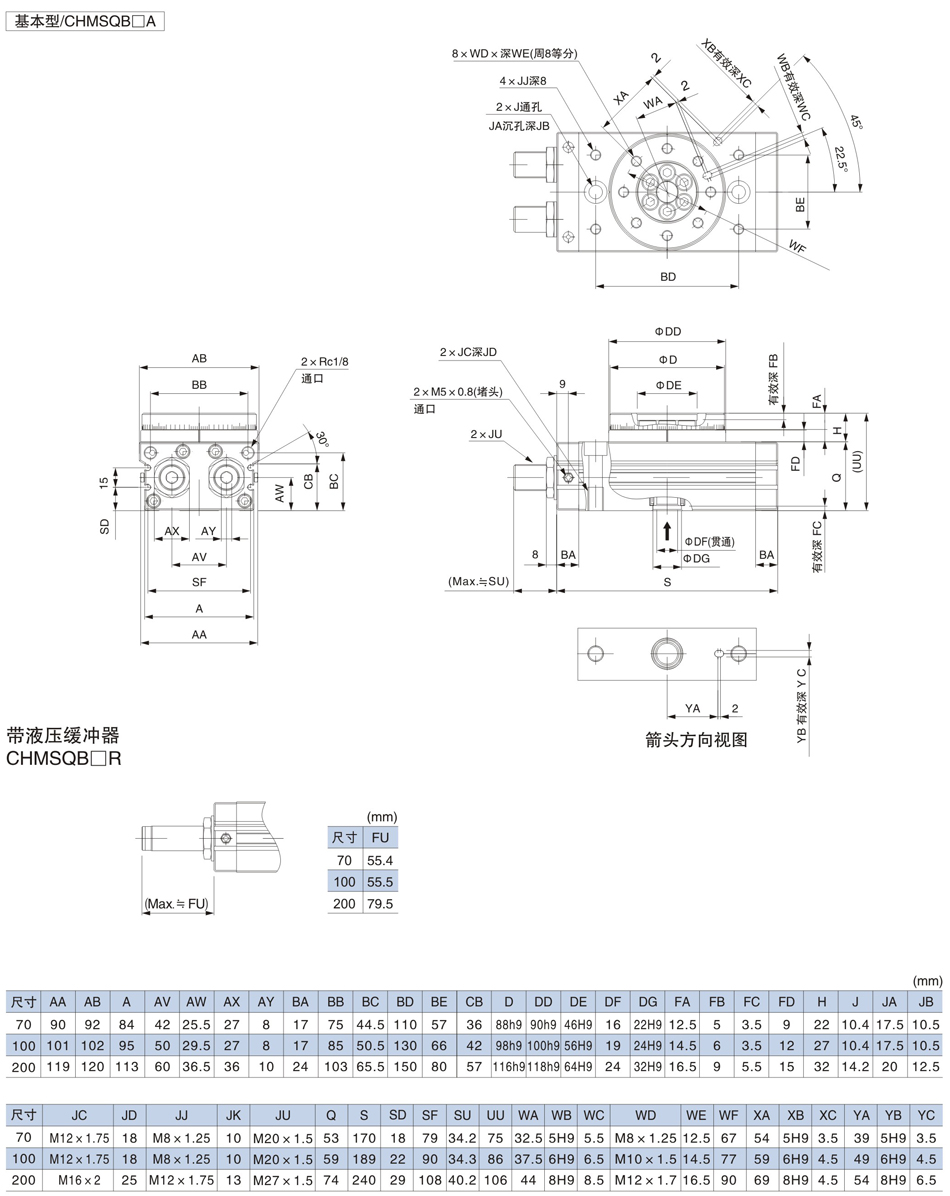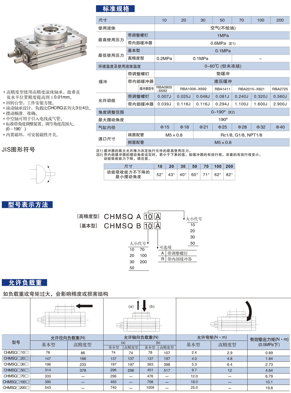 CHMSQ系列(擺臺(tái)大小:10-200) 齒輪齒條式擺動(dòng)氣缸