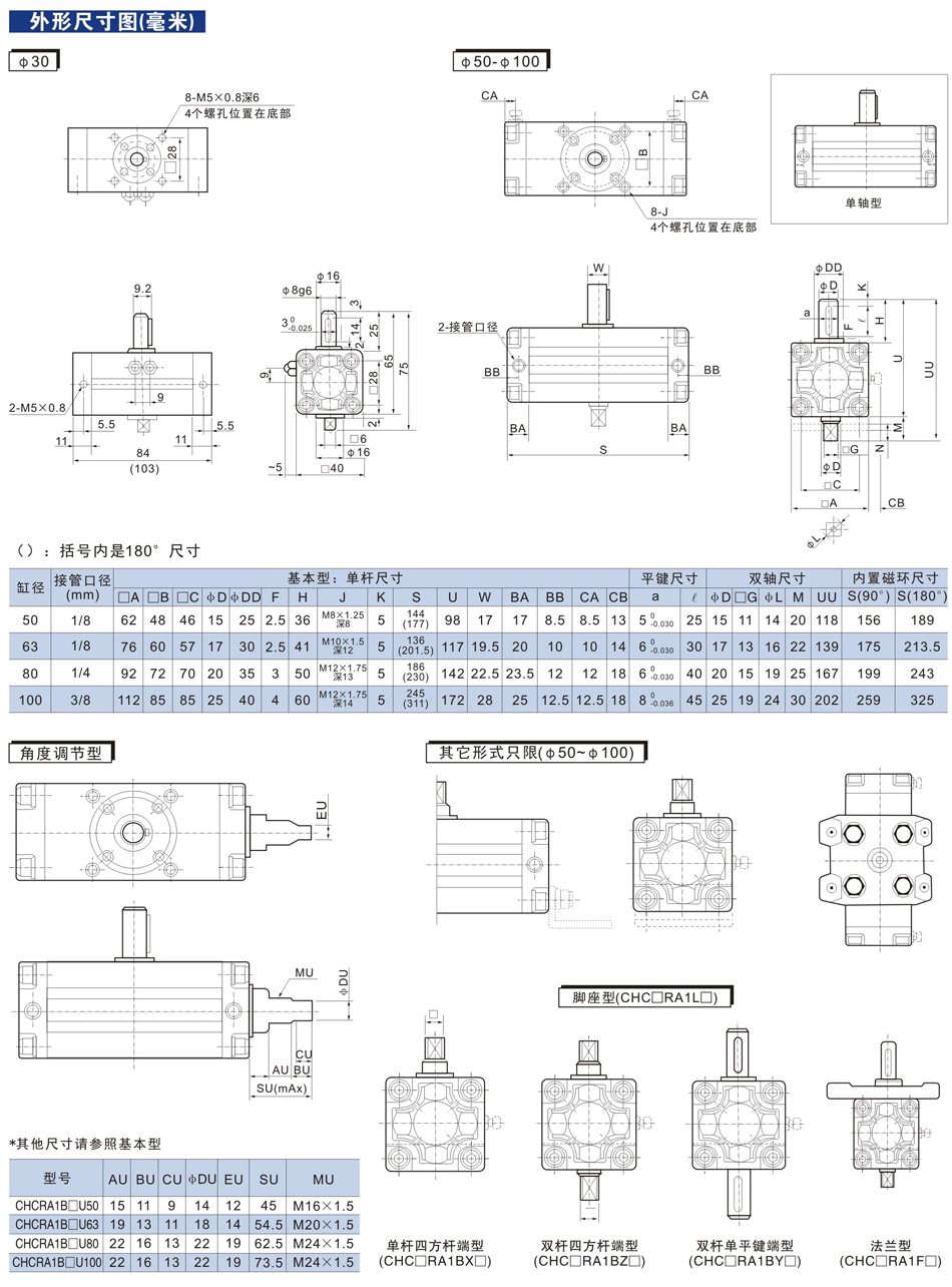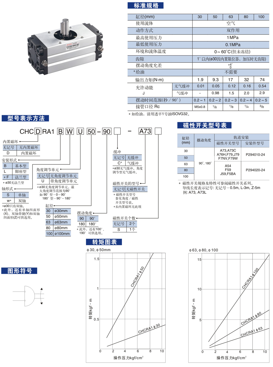 CHCRA1系列(Φ30-Φ100) 齒輪齒條式擺動氣缸