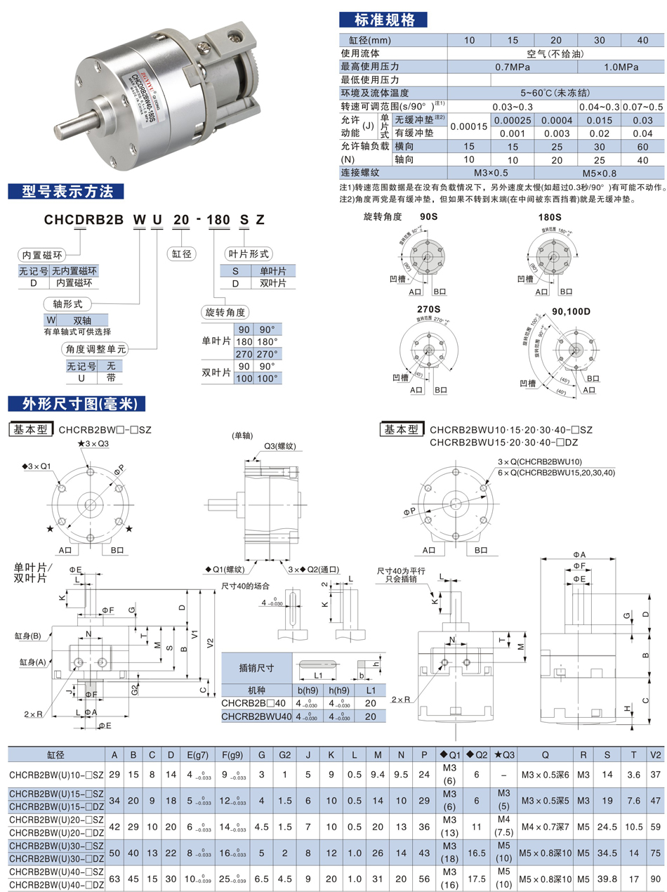 CHCRB2系列(Φ10-Φ40) 新款葉片式旋轉(zhuǎn)氣缸