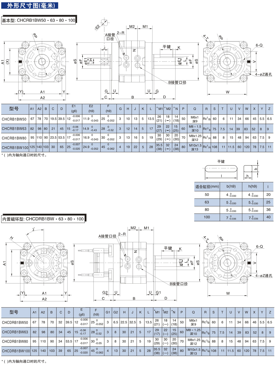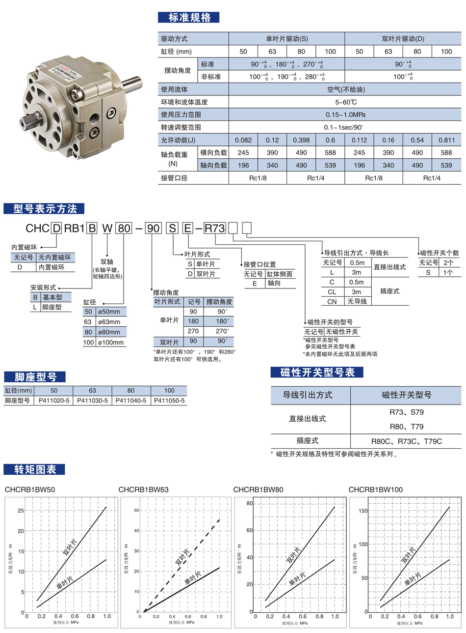 CHCRB1系列(Φ50-Φ100) 大型葉片式擺動氣缸