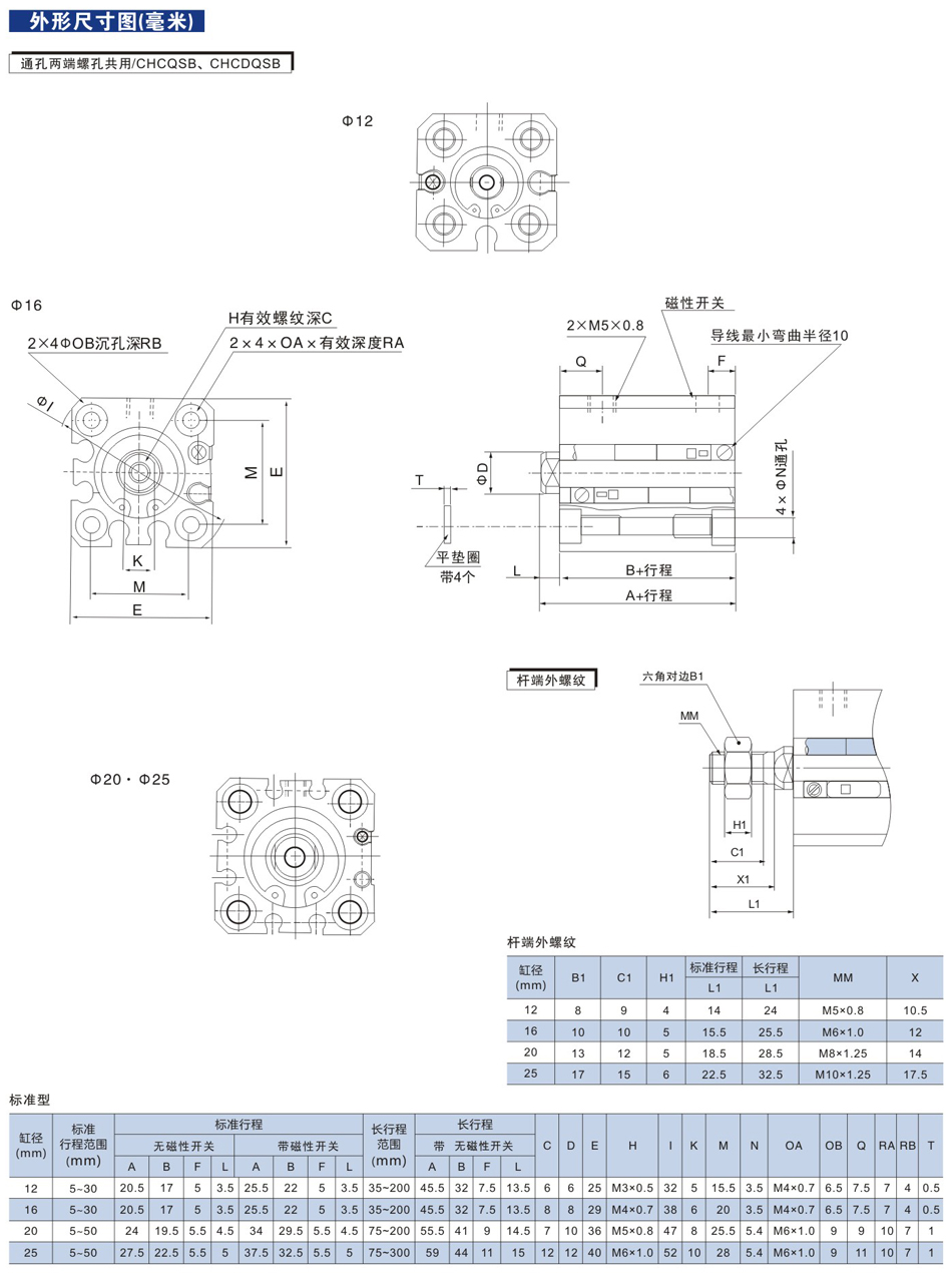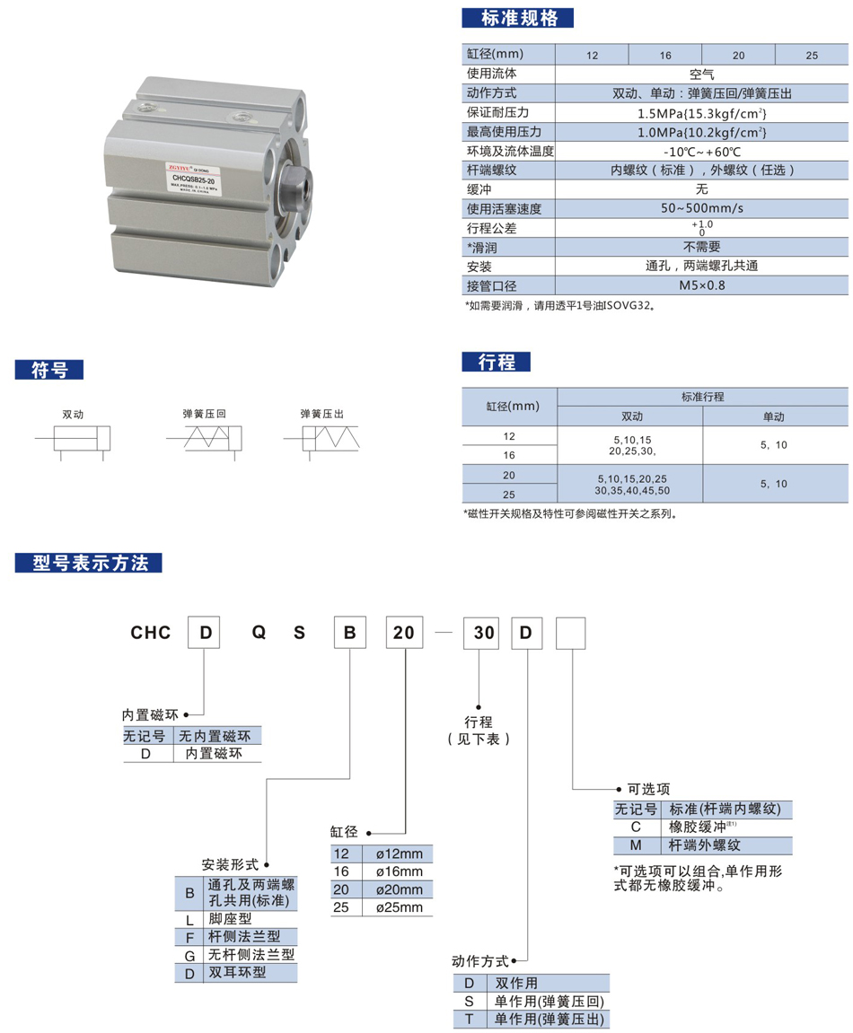 CHCQS系列(Φ12-Φ25) 薄型氣缸