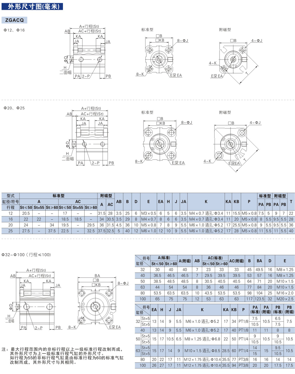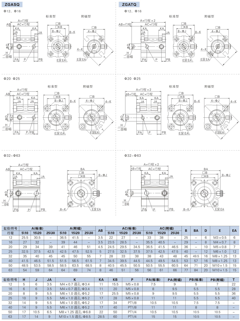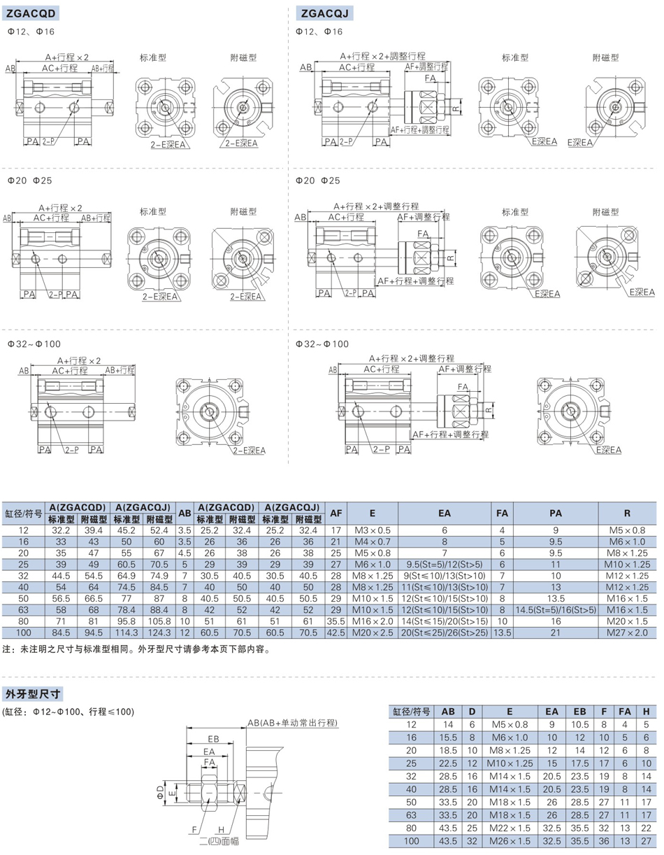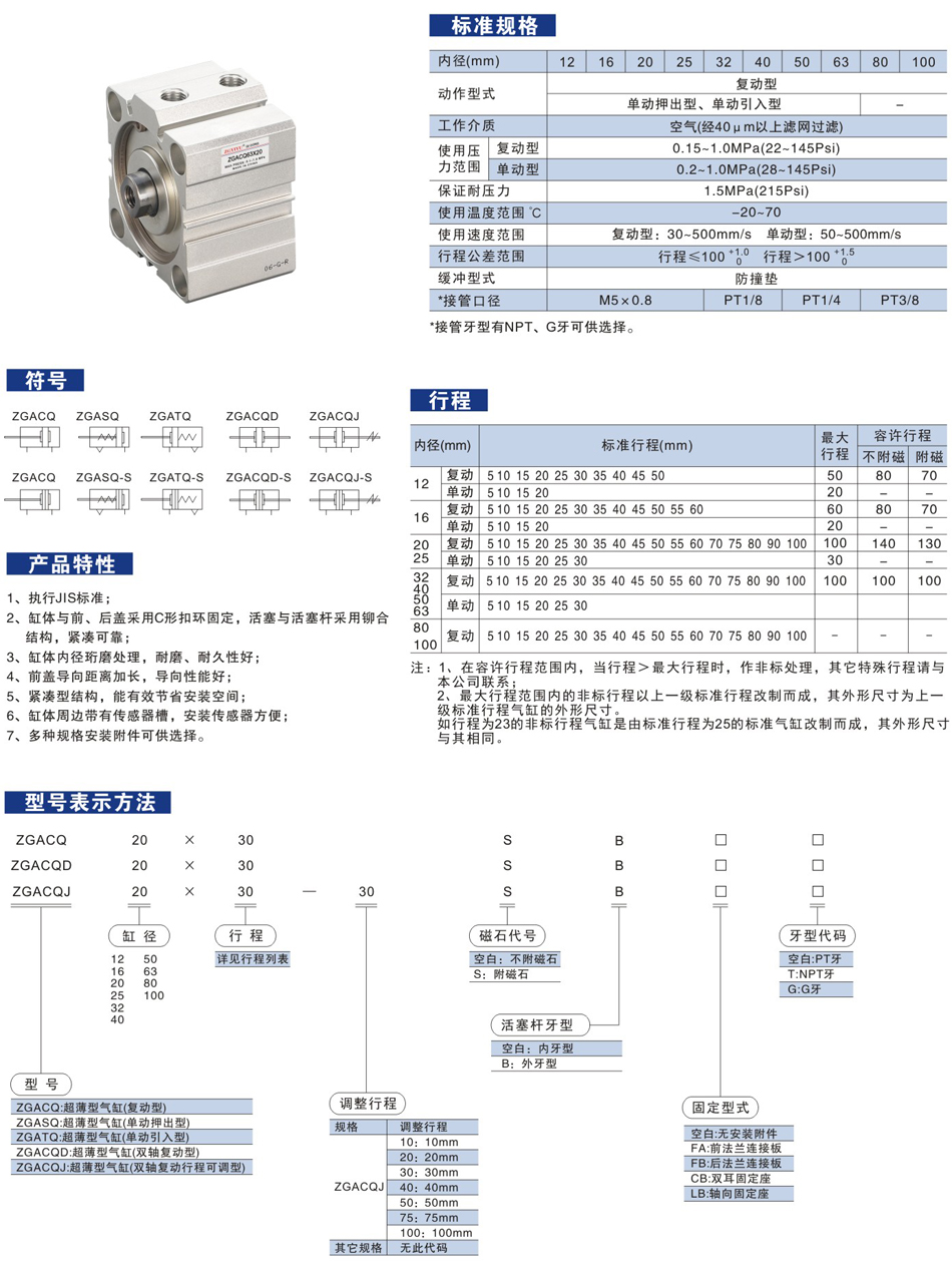ZGACQ系列(Φ12-Φ100) 超薄氣缸